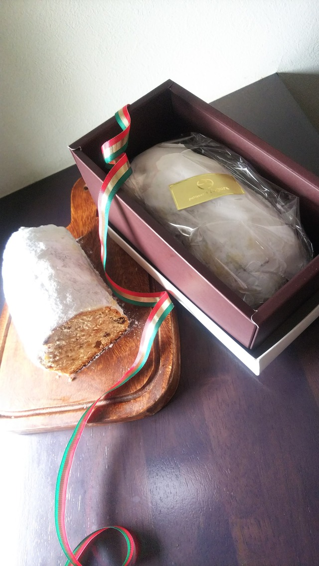 キリスト誕生のおくるみを模して作られたお菓子 クリスマスまでの期間1cmぐらいにスライスしながら楽しむ、ドイツ発祥のクリスマス菓子 【原材料】 小麦粉(北海道と滋賀県産)・砂糖・滋賀県近江八幡牛乳・バター・脱脂粉乳・滋賀県近江八幡鶏卵・アーモンド・レモン・日向夏・チェリー・リンゴ・くるみ・レーズン・シナモン・ナツメグ・洋酒・オレンジ・パイン・イースト・塩 【本体サイズ】 Sサイズ 14✕6✕H6cm 注)こちらの商品は、箱の色がベージュに変更となります